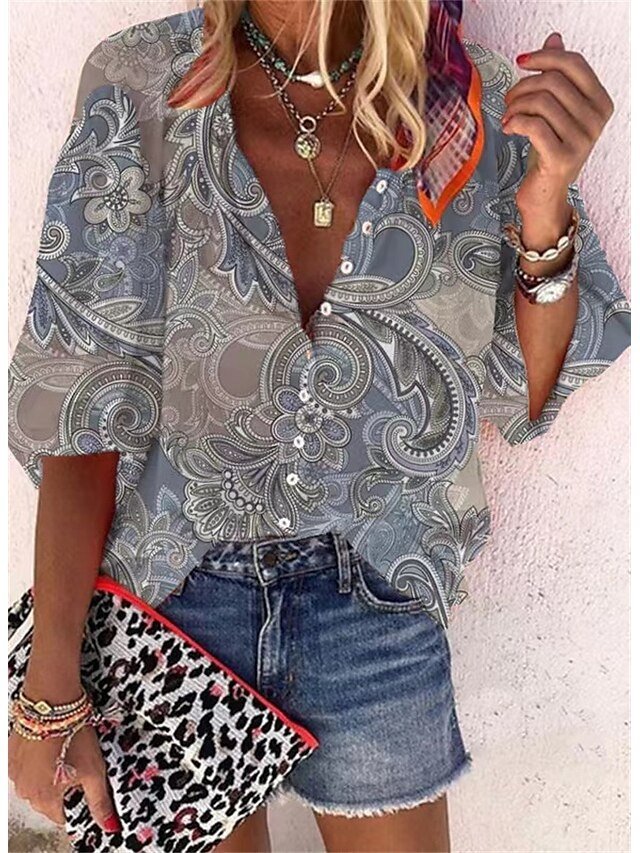 Elevate your style with this casual print V neck long sleeve shirt blouse. Available in vibrant colours for a stylish spring or fall look.