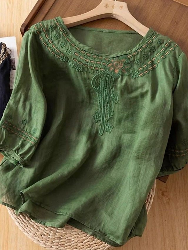 Embrace effortless elegance this summer with our exquisitely crafted casual blouse, designed for the modern woman who values both comfort and style. Made from a luxurious blend of cotton and linen, this blouse is perfect for daily wear, offering a touch of sophistication with its lace patchwork detail.