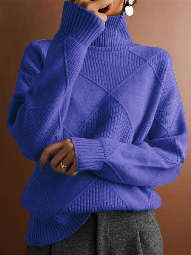 Casual Regular Solid Turtleneck Long Sleeve Regular Knit Top