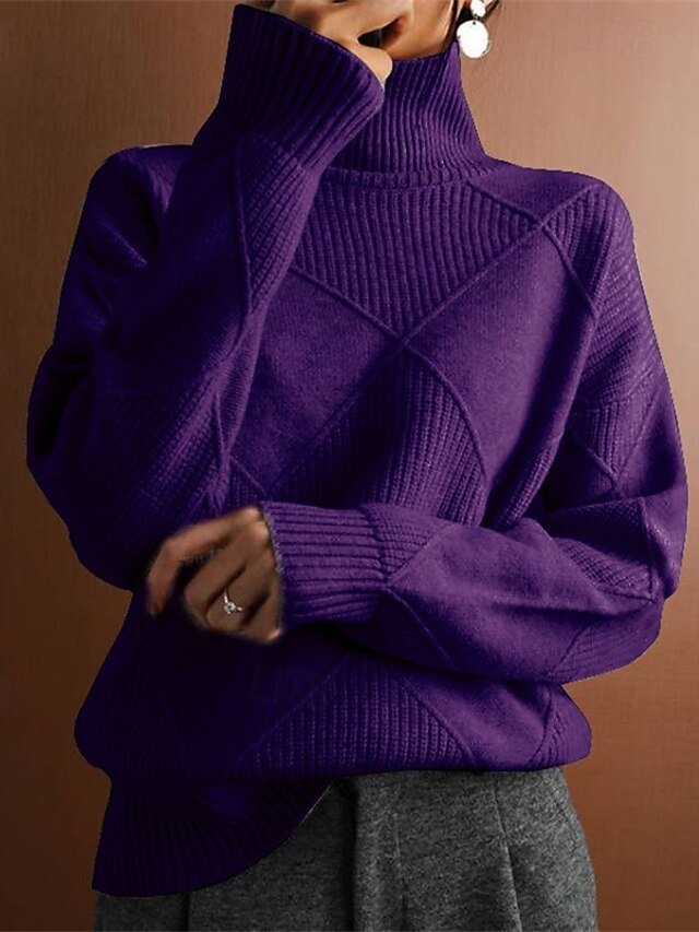 Indulge in the epitome of cosy style with our exquisite Casual Regular Solid Turtleneck Long Sleeve Regular Knit Top. Perfect for making a statement whether you’re out for a winter stroll or enjoying a festive gathering, this top exudes effortless elegance and timeless appeal.