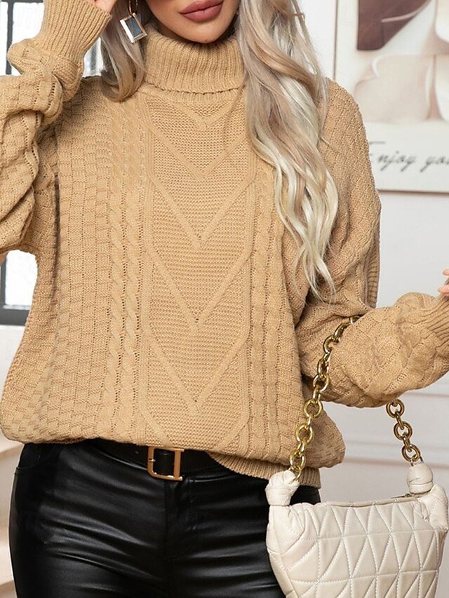 Discover our Women’s Casual Turtleneck Knit Top, perfect for fall and winter. Stay stylish and warm with this chunky, solid-colour pullover.