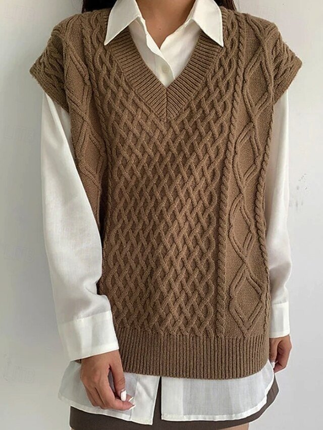 Discover our elegant Cable Knit Sweater Vest, perfect for elevating your autumn wardrobe with its classic V neck and cosy style.