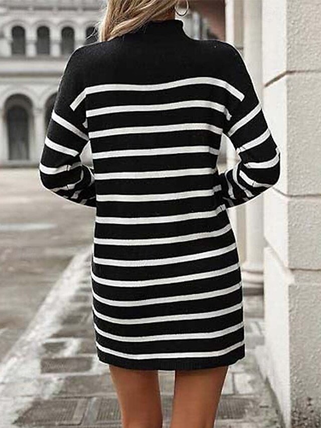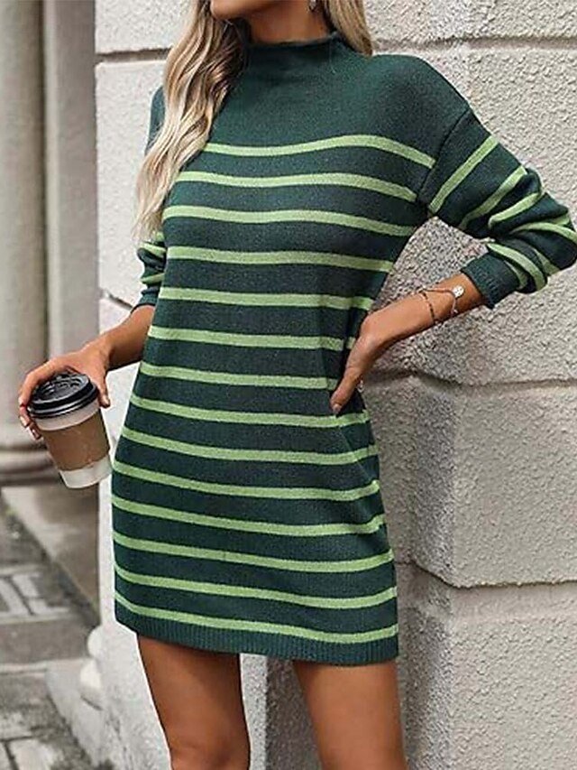 Embrace the essence of effortless elegance with our stunning casual striped sweater dress. Perfect for those crisp autumn mornings and chilly winter evenings, this piece epitomises sophistication and timeless style.