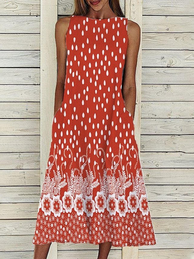 Step into a world of effortless elegance with our Polka Dot Crew Neck Sleeveless Midi Dress. Perfectly crafted for those who appreciate the art of understated yet sophisticated fashion, this dress is your ticket to timeless style for any casual outing or vacation day.