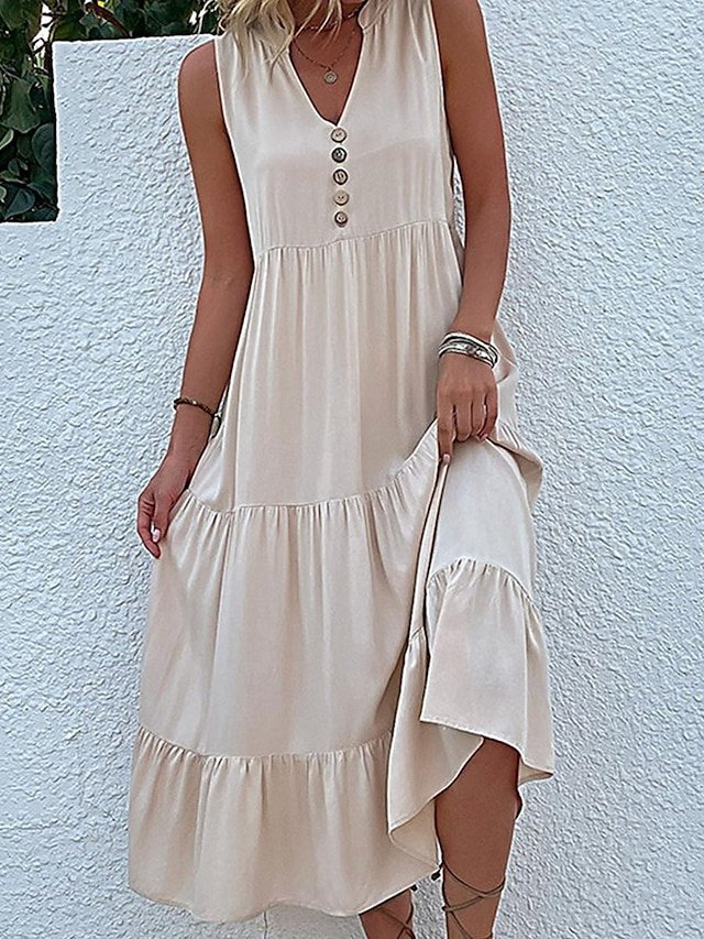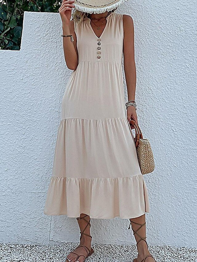 Elevate your everyday elegance with this enchanting casual midi dress, a wardrobe staple designed for the sophisticated woman. Exuding a refined yet relaxed charm, this dress is perfect for those leisurely brunches or a day out exploring. Its timeless design promises to be a versatile addition to your fashion repertoire.