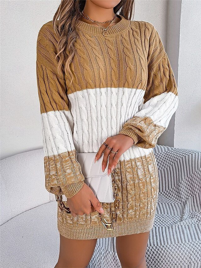 Step into the cooler seasons with an air of effortless elegance in our Casual Soft Colour Block Sweater Dress. Perfect for outdoor adventures or relaxed weekends, this sophisticated piece combines timeless style with a touch of modern flair to create a must-have addition to your autumn and winter wardrobe.