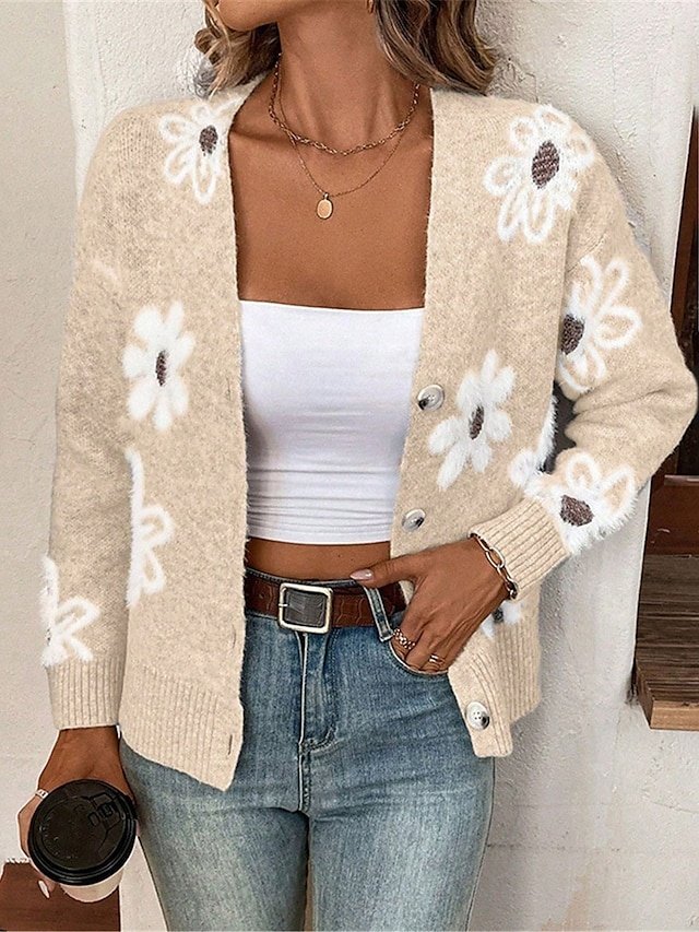 Elevate your autumn and winter wardrobe with a touch of elegance through our exquisite Casual Soft Floral Ribbed V Neck Cardigan. Perfectly crafted for the discerning woman who appreciates the blend of comfort and style, this cardigan is the quintessential addition to your seasonal collection.