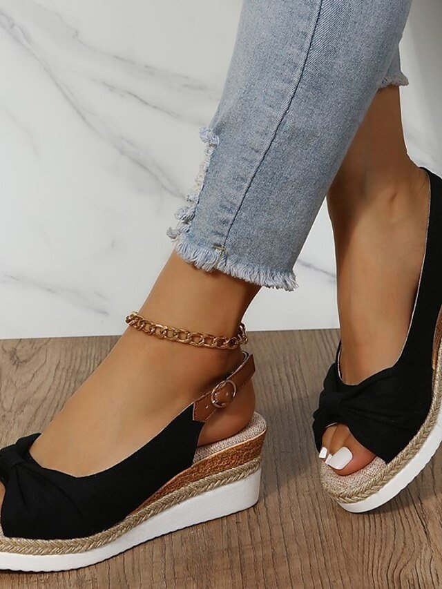 Casual Summer Open-Toe Slingback Bow Wedge Sandals