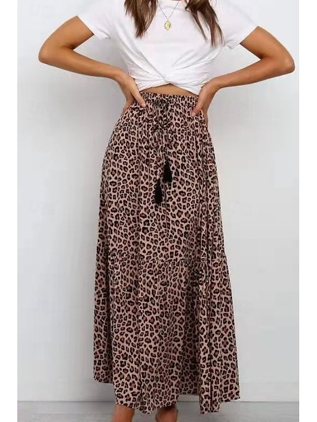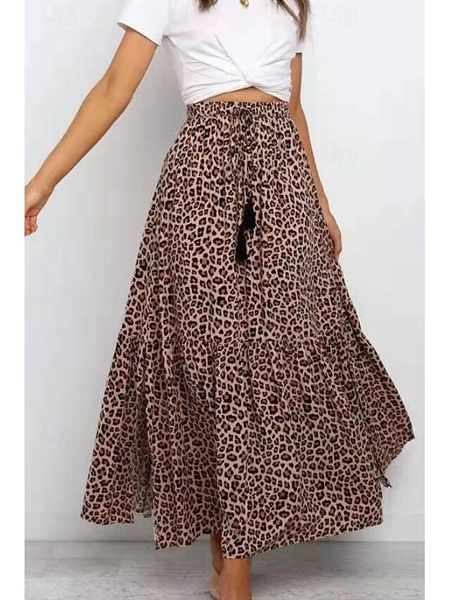 Discover elegance with our Casual Swing Leopard High Rise Maxi Skirt, perfect for vacation or street style. Crafted from premium cotton.