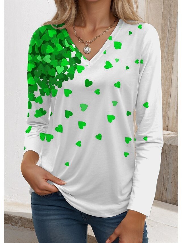 Shop our charming Heart V Neck Tee, perfect for a stylish weekend look. Long sleeves, heart print, and premium polyester make it a wardrobe essential.