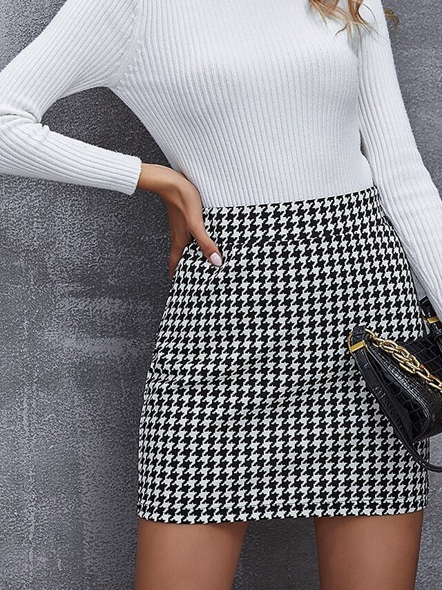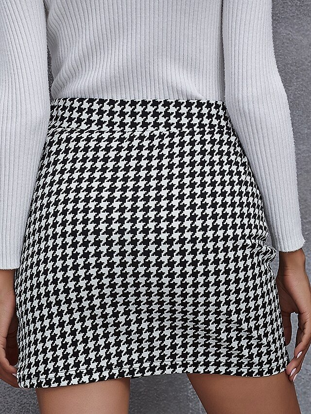 Shop the Elegant Bodycon Houndstooth High Waist Mini Skirt. Perfect for chic street style or casual elegance. Available in S, M, L, XL.
