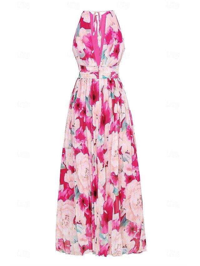 Discover elegance with our floral halter neck maxi dress. Perfect for weddings and parties, available in pink and white. Shop now for timeless beauty.
