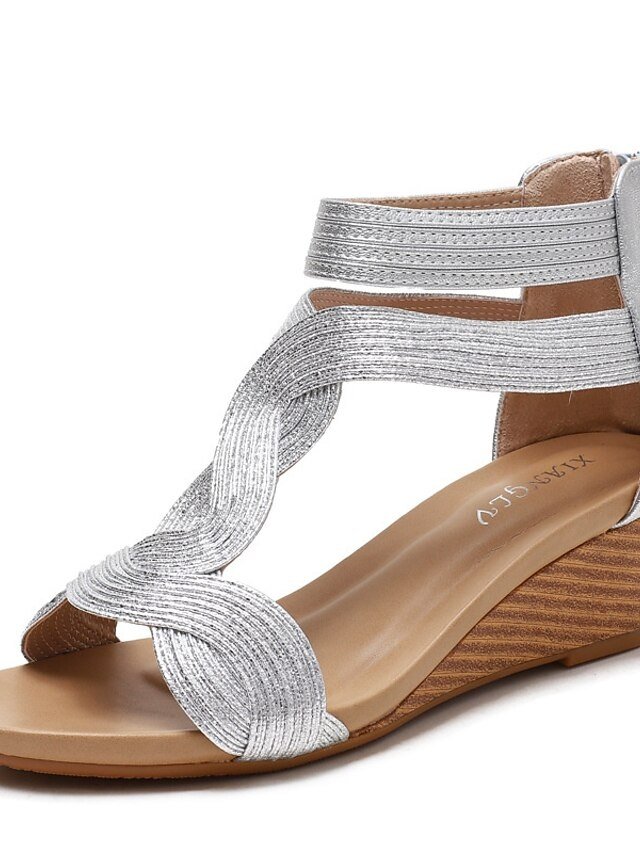 Elegant Glitter Low Wedge Open Toe Strappy Sandals
