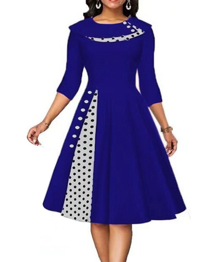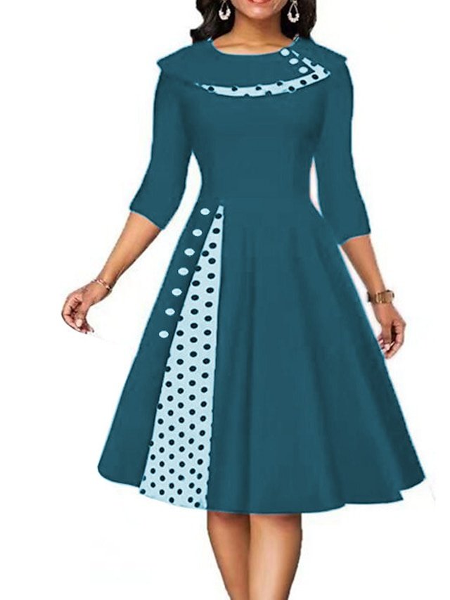 Elegant Loose Plaid Polka Dot Crew Neck Half Sleeve Knee Length Dress