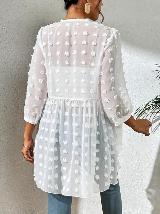 Step into effortless elegance with our stunning Elegant Loose Solid V Neck Long Sleeve Asymmetric Hem Shirt. Perfect for the discerning woman who appreciates understated luxury, this piece is a versatile addition to your wardrobe, seamlessly transitioning from the office to a sophisticated evening out.