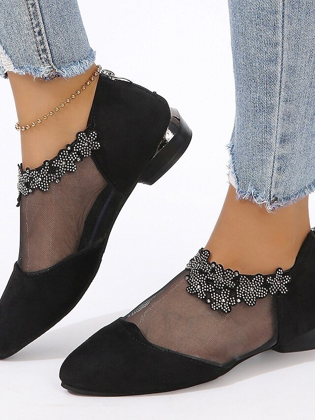Step into sophistication with our Elegant Mesh Floral Rhinestone Pointed Ankle Boots, designed to epitomise luxury and grace. These exquisite low heel boots are perfect for making a grand entrance at formal events and parties, adding a touch of glamour to your ensemble.
