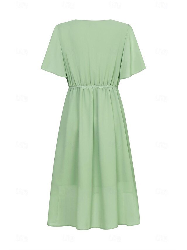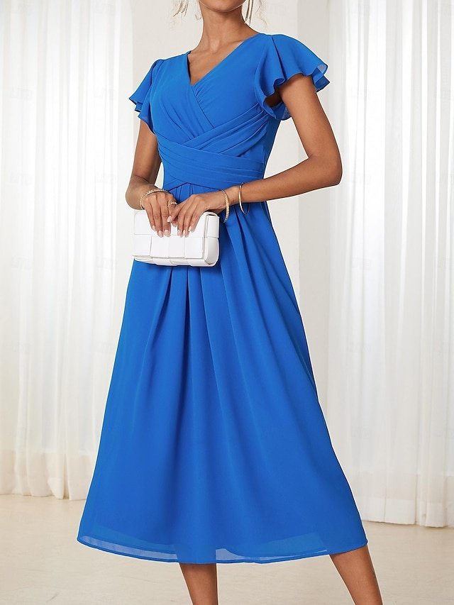 Embrace the perfect blend of sophistication and charm with our Elegant Midi Chiffon Dress, meticulously crafted for the discerning wedding guest. Whether you’re gracing a summer ceremony or an intimate cocktail affair, this dress is your ticket to timeless elegance.