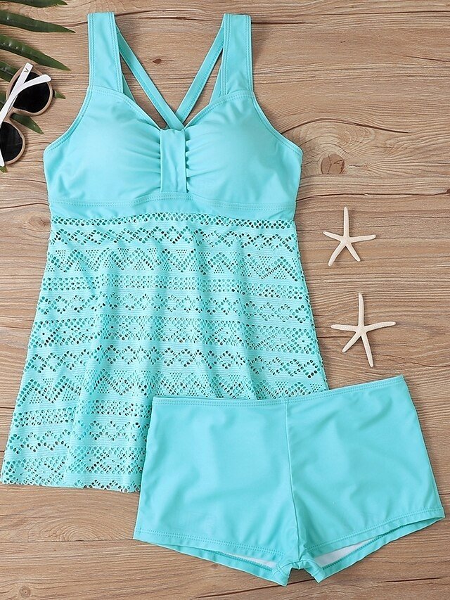 Elegant Plus Size Solid Lace Sleeveless Tankini