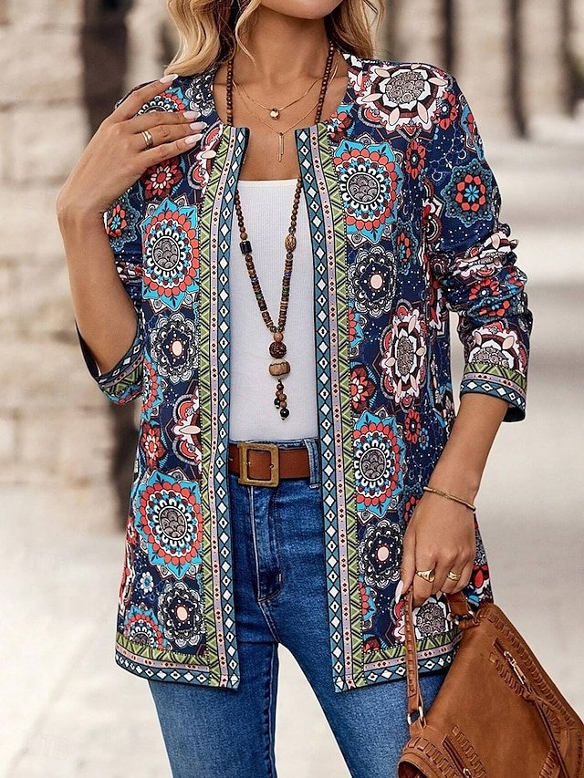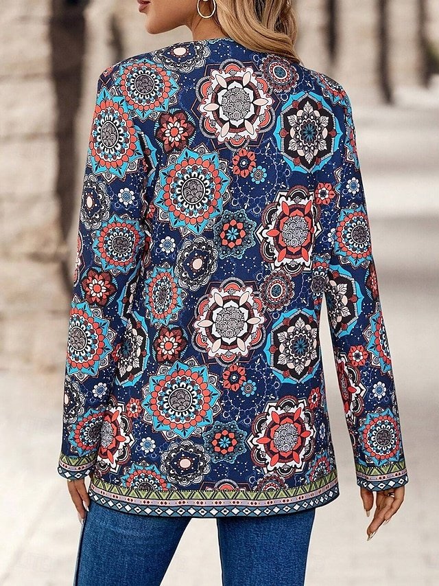 Discover vintage charm with our Elegant Floral Collarless Blazer. Perfect for work or casual outings. Available in pink, blue, orange. Shop now!