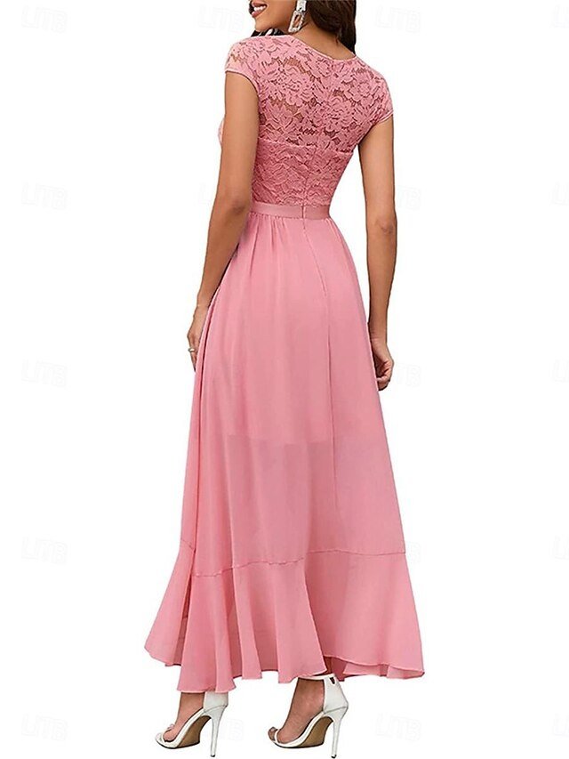 Step into the realm of elegance with our breathtaking Maxi Dress, a masterpiece designed to make you the centre of attention at any cocktail or wedding event. Crafted with exquisite lace and flowing chiffon, this dress promises to infuse your wardrobe with timeless sophistication and grace, perfect for any formal occasion.