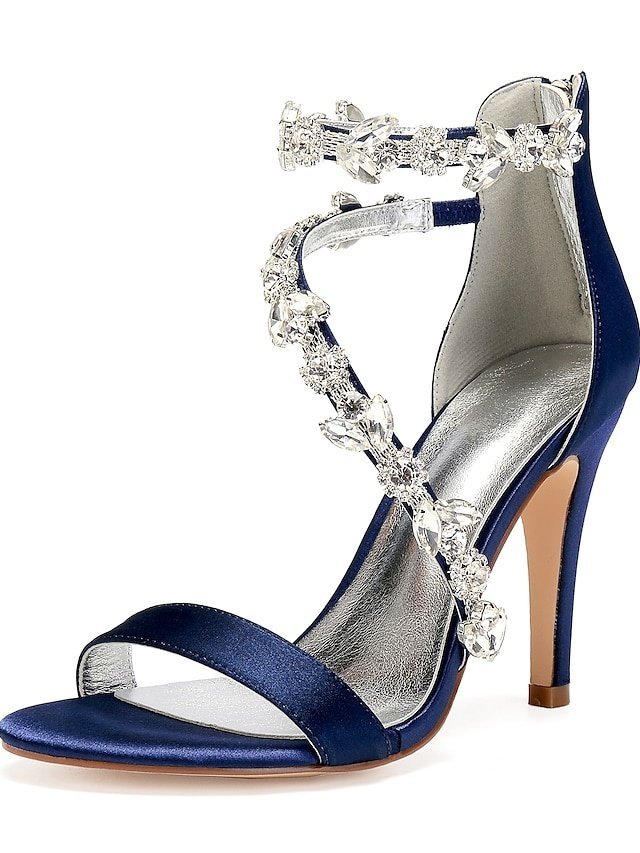 Step into a world of elegance with our navy satin bridal stiletto heels, the epitome of sophistication for your most cherished occasions. These heels, adorned with sparkling rhinestone embellishments, are not only a statement of luxury but a testament to your impeccable taste. Perfectly crafted for weddings, formal events, and cocktail parties, they promise to elevate your ensemble and leave a lasting impression.