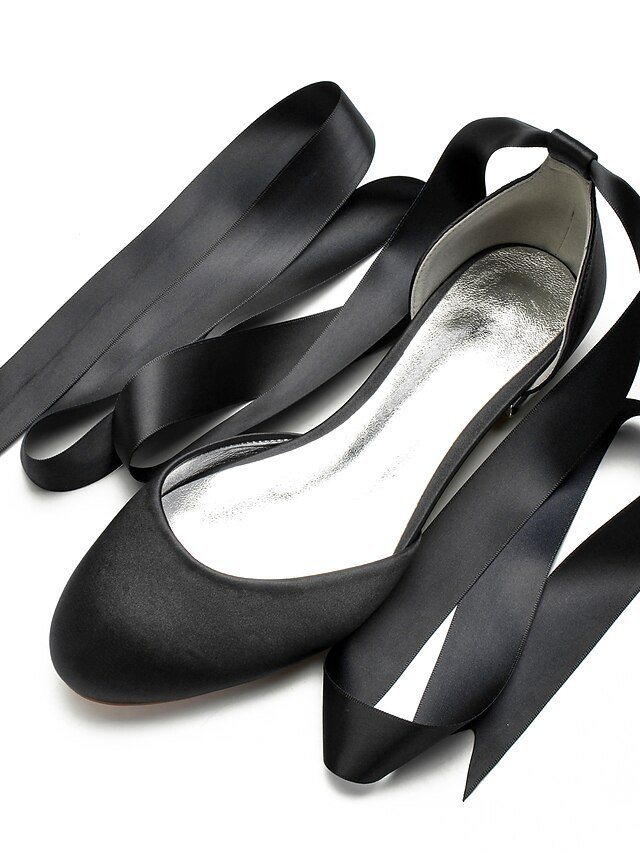 Elegant Satin Ribbon Tie Ballet Flats