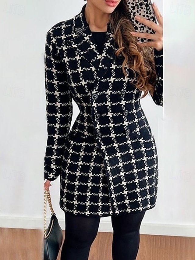 Discover sophistication with our Elegant Thickened Lattice Print Lapel Overcoat, perfect for a luxe winter. Sizes UK 6-16 available.