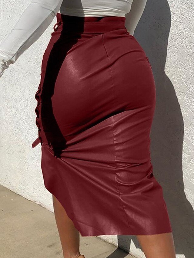 Elevate your style with our Fashion Bodycon Solid High Waist Midi Skirt, perfect for any chic occasion. Available in Black, Wine, Brown.