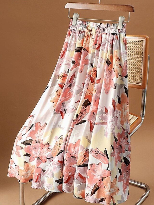 Embrace the elegance of effortless style with our Fashion Casual Floral High Waist Maxi Chiffon Skirt. A perfect companion for any vacation or date, this skirt combines comfort and sophistication in a captivating blend of yellow, pink, and blue hues. It is designed for the modern woman who values both luxury and versatility.
