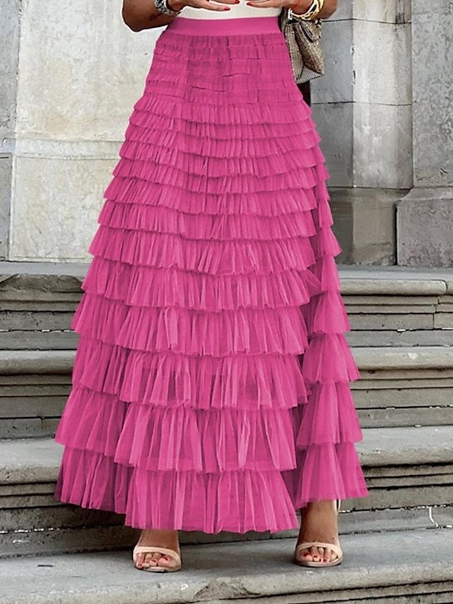 Step into a world of elegance and sophistication with our Fashion Casual Maxi High Waist Solid Ruffle Skirt. This enchanting piece is perfect for the modern woman who values both style and comfort.