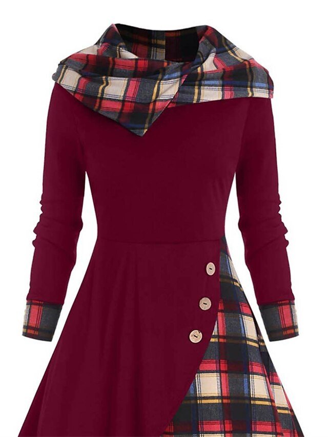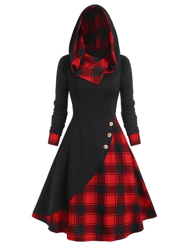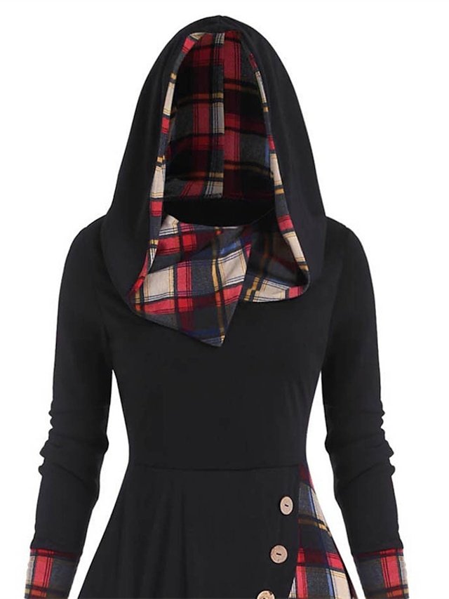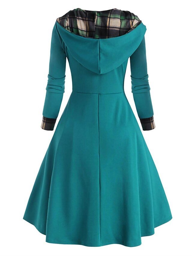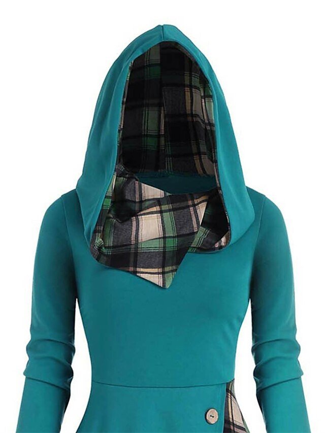 Embrace the timeless elegance of plaid with our Fashion Loose Fit Plaid Hooded Long Sleeve Midi Dress. Perfect for traversing through seasons, this dress is a versatile addition to your wardrobe, combining comfort and style effortlessly. Whether heading to a casual outing or a well-deserved vacation, this piece ensures you stand out with an effortless grace.
