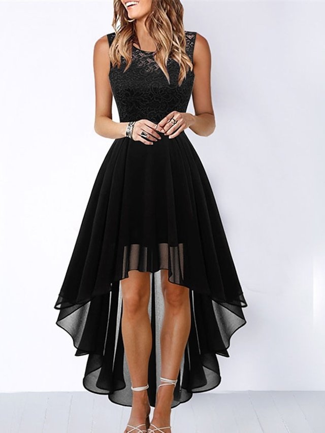 Chiffon Dress, Swing Dress, Wedding Guest Dress, High Low Dress, Cocktail Dress, Semi Formal Dress, Lace Dress, Party Dress