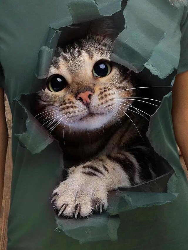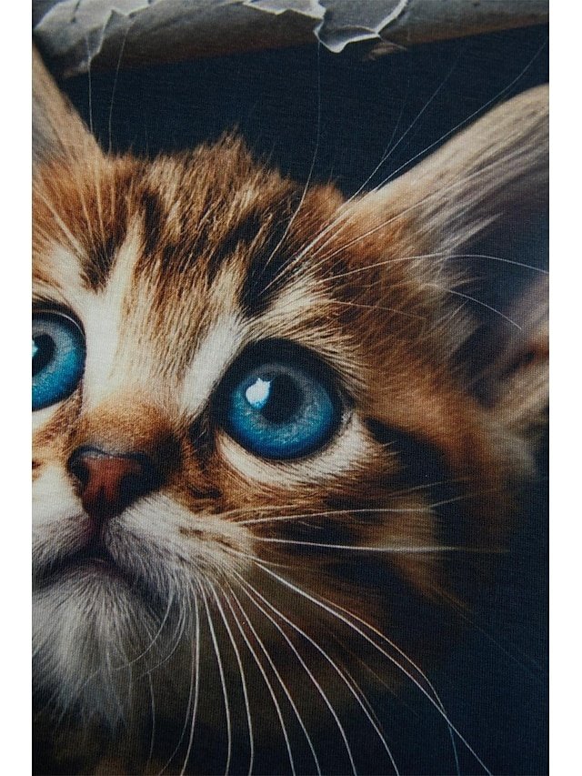 Explore whimsy and style with our Cat Print Top. Perfect for summer with a playful 3D design, short sleeves, and a regular fit.