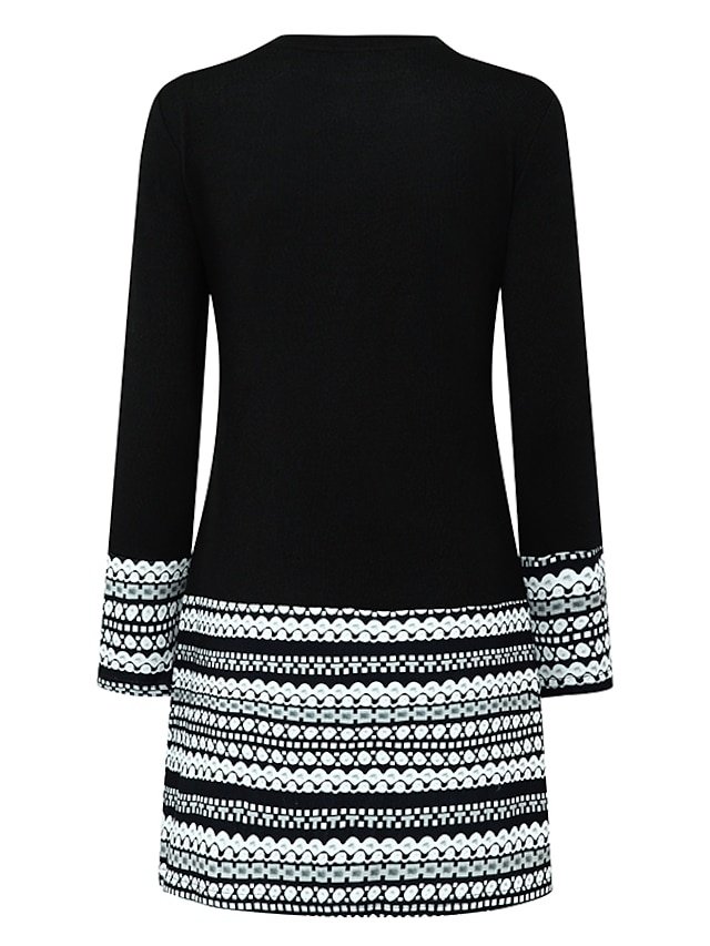 Step into the realms of elegance this season with our Fashion Regular Fit Geometric Striped Mini Dress. Designed to encapsulate both warmth and style, this dress is your perfect ally for those chic winter outings or lively street parties.
