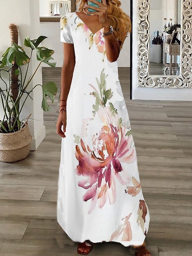 Step into the spotlight with our exquisite Fashion Regular Fit Graphic Floral V Neck Maxi Dress, designed to envelop you in elegance and style. Perfect for your daily outings or dreamy holiday escapes, this dress is a celebration of modern femininity.