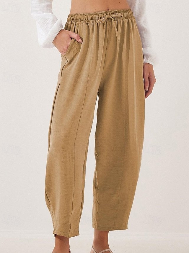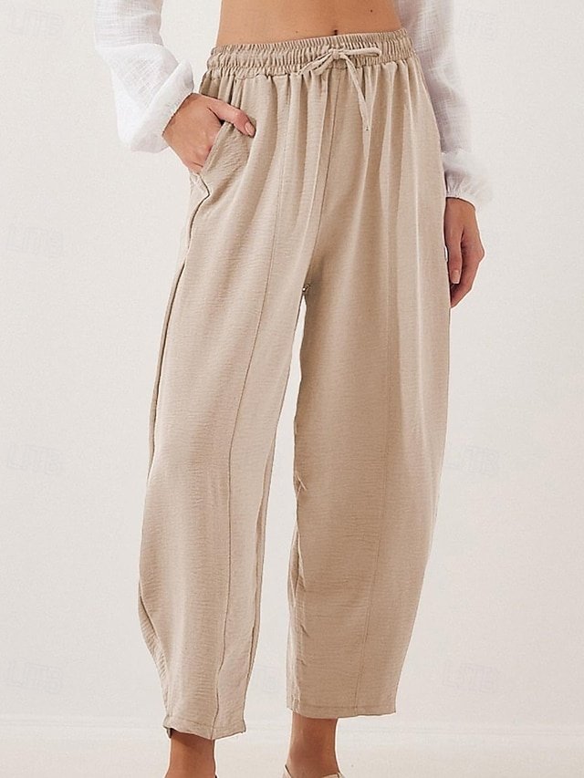 Introducing our exquisite Fashion Regular Fit Plain Elastic Drawstring Full Length Trousers, designed for the modern woman who values both style and comfort. These trousers offer a seamless blend of sophistication and ease, perfect for any outdoor adventure or a leisurely vacation. Embrace the summer vibes with these versatile trousers, available in an array of calming colours including Apricot, Light Sky Blue, Grey, and Navy.