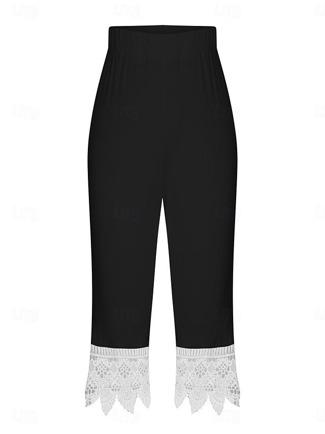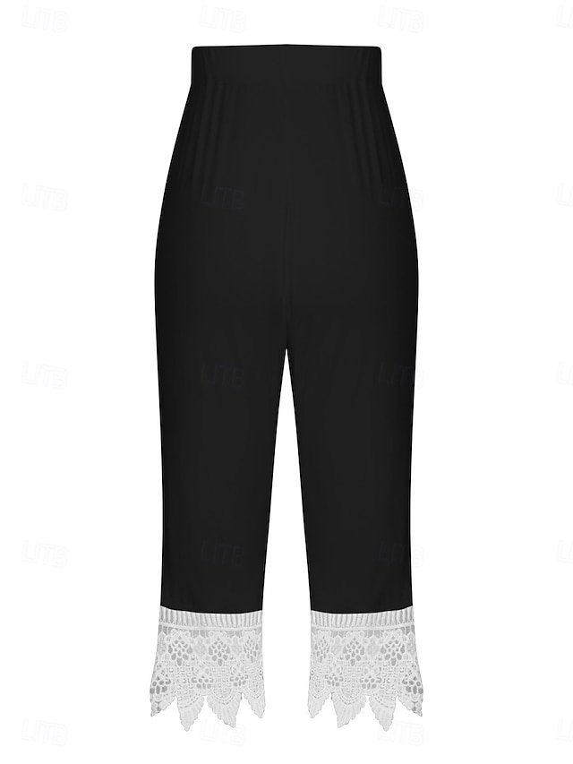 Step into sophistication with our Fashion Regular Fit Plain High Waist Lace Detail Calf-Length Chinos, designed to offer you both comfort and style for those warm summer days. Perfect for the modern woman who values both fashion and versatility, these chinos are your new go-to for any outdoor adventure or streetwear ensemble.