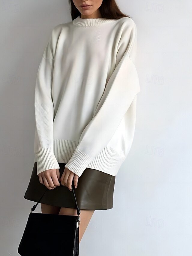 Step into the realm of timeless elegance with our Fashion Regular Fit Solid Crew Neck Long Sleeve Knit Top. Perfectly curated for the discerning woman, this sweater embodies sophistication and warmth, making it an exquisite addition to your autumn wardrobe. Whether you’re heading out for a weekend jaunt or embracing the holiday spirit, this piece promises both comfort and style.