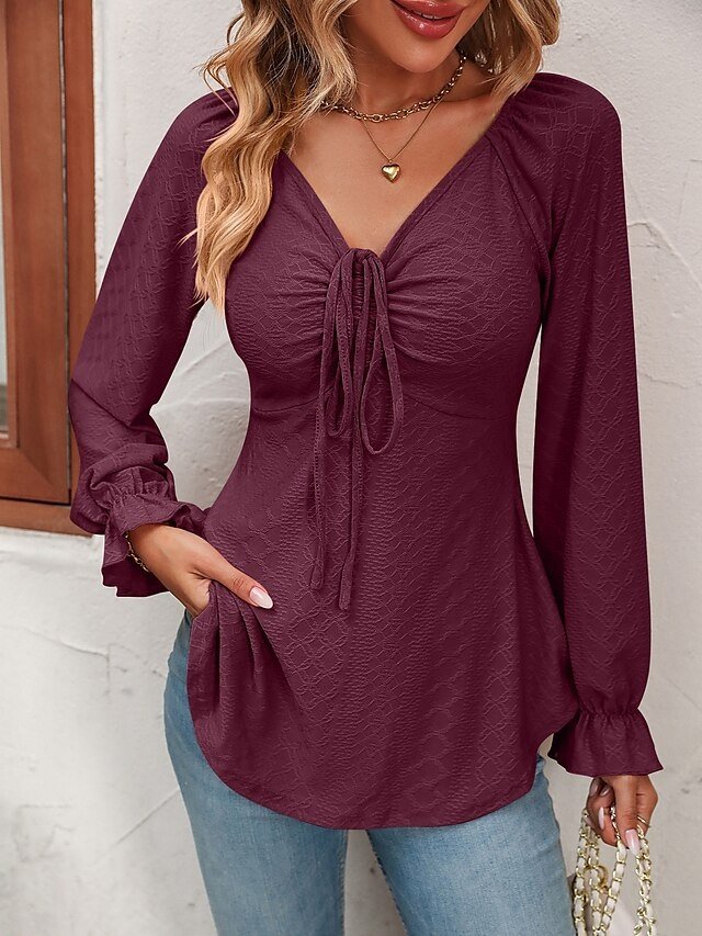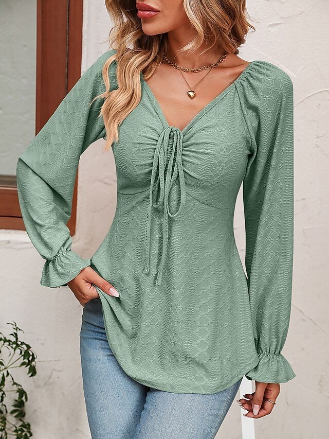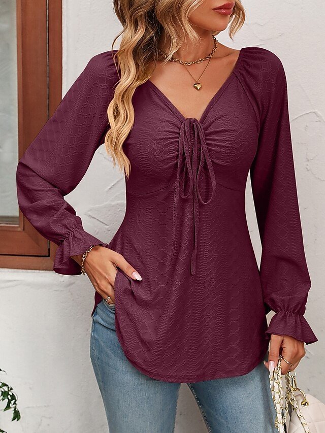 Fashion Regular Fit Solid V Neck Long Sleeve Tunic Blouse