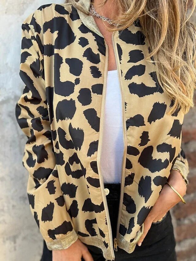 Step into the realm of opulence with our exquisite Fashion Regular Leopard Stand Collar Long Sleeve Jacket. Perfectly crafted for those who embrace style with a hint of wilderness, this luxurious piece is your ultimate companion for the colder seasons.