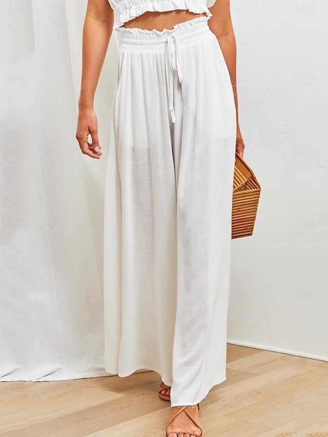 Discover elegant wide leg trousers with drawstring waist, perfect for casual wear. Available in vibrant colours. Shop now for comfort and style.