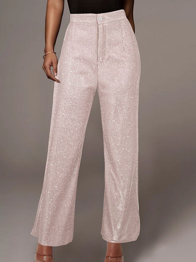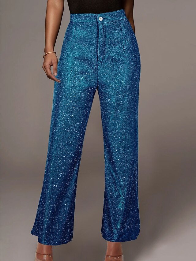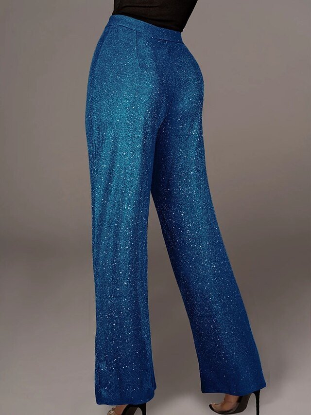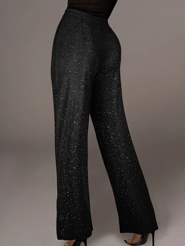 Fashion Wide Leg Solid High Waist Full Length Sequin Trousers