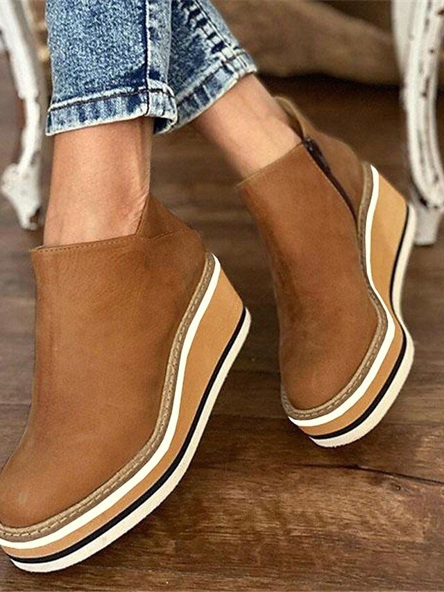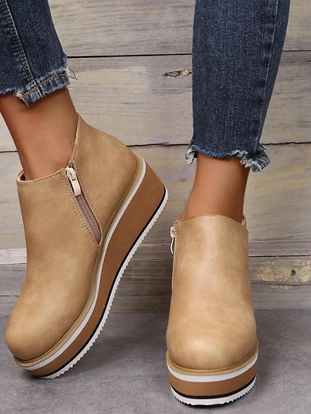Step into effortless elegance with our Minimalism Casual Black Round Toe Ankle Wedge Boots. Perfectly bridging the gap between style and comfort, these boots are the quintessential addition to your autumn wardrobe, offering a chic yet sophisticated touch to your everyday ensemble.