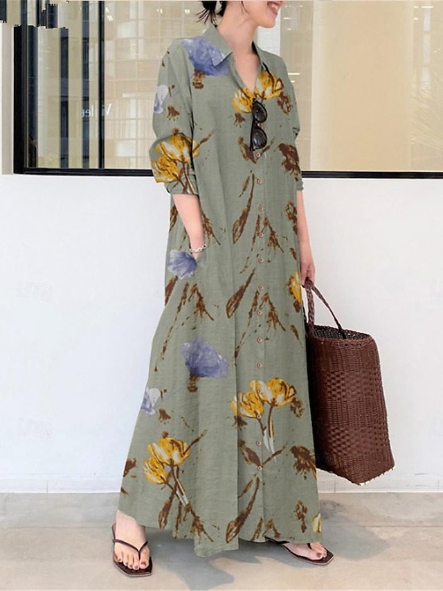 Step into a realm of timeless sophistication with our Modern Loose Fit Floral Maxi Dress. Crafted with an exquisite blend of cotton and linen, this dress is the quintessential staple for any woman’s wardrobe. Whether you’re wandering through a weekend market or enjoying a leisurely brunch, this dress promises a seamless blend of comfort and style.