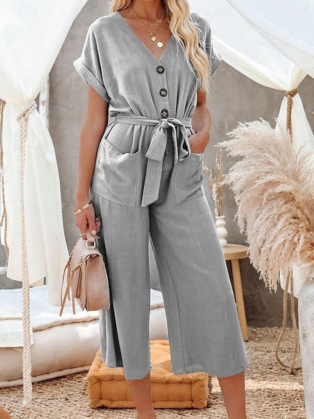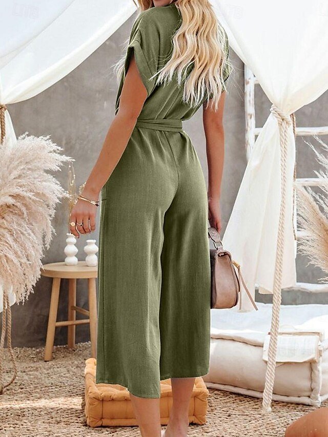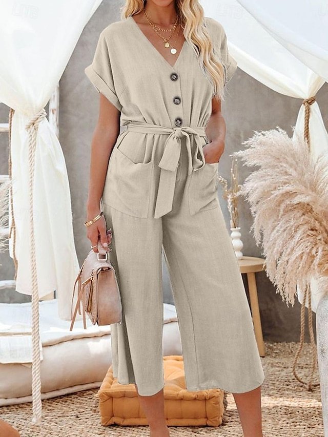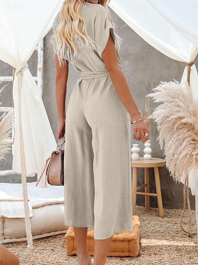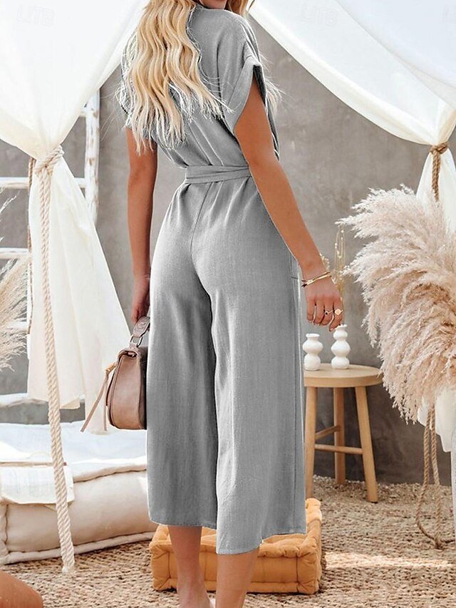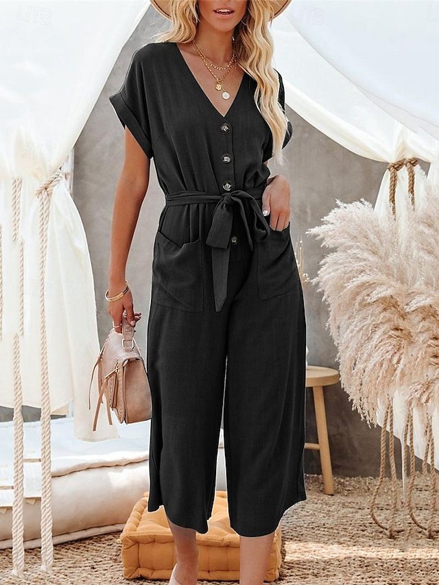Discover the perfect blend of style and comfort with our solid colour jumpsuit, featuring a shirt collar and a versatile fit for any occasion.