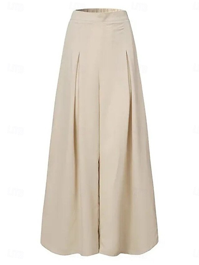Streetwear Regular Fit Plain High Waist Wide Leg Chinos