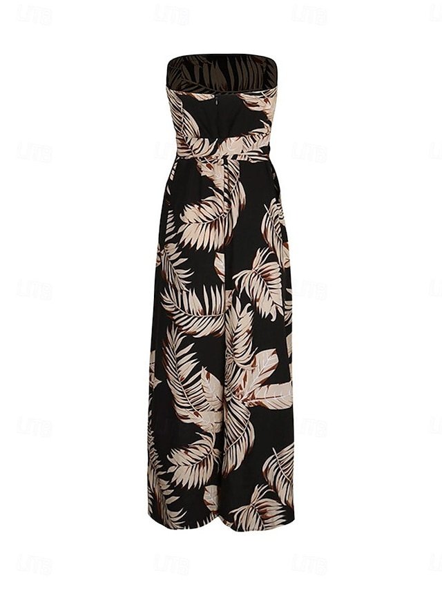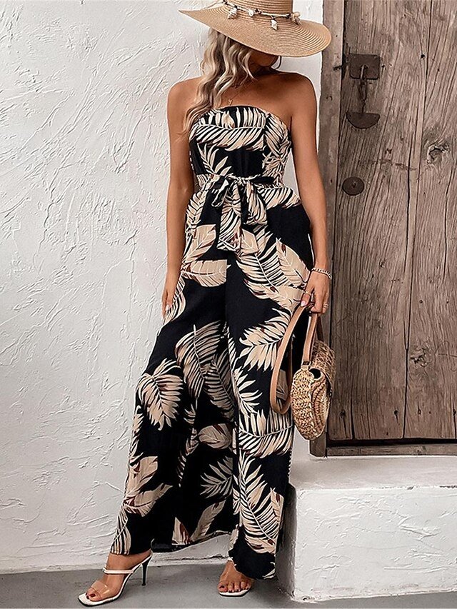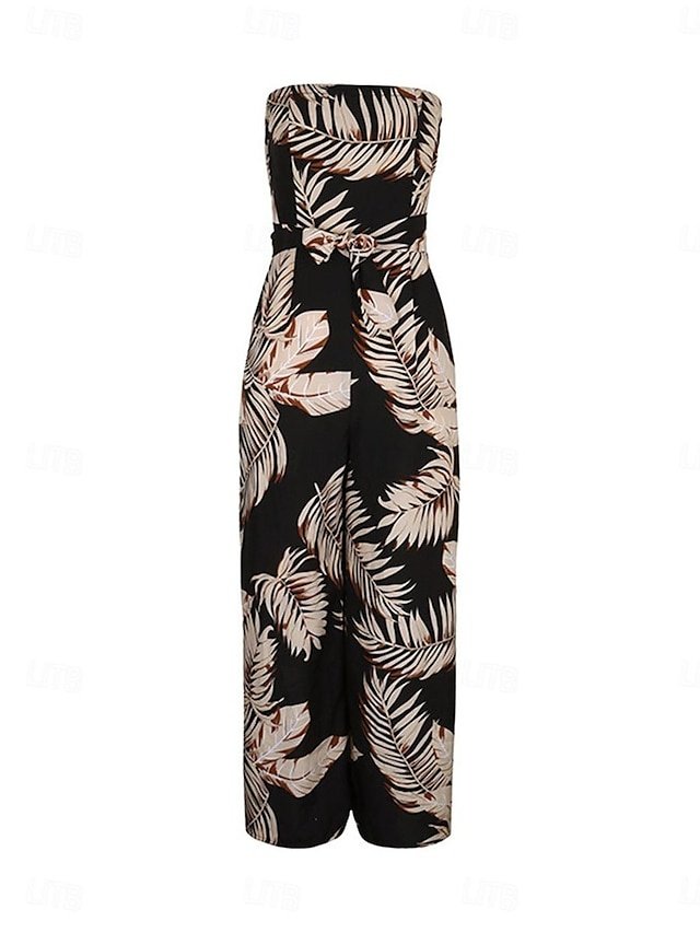 Elevate your summer wardrobe with this black strapless print jumpsuit. Perfect for a chic streetwear look with a high waist and sleeveless design.