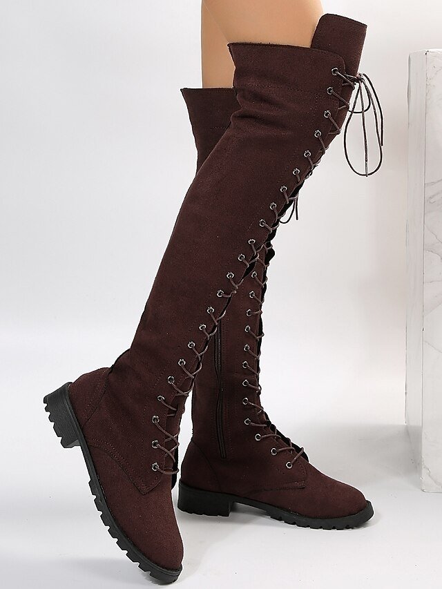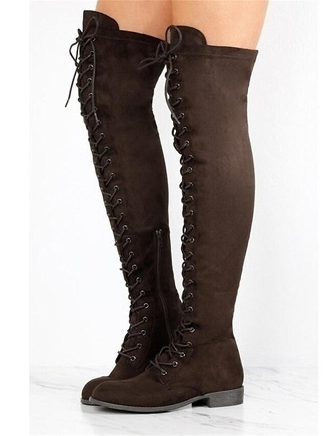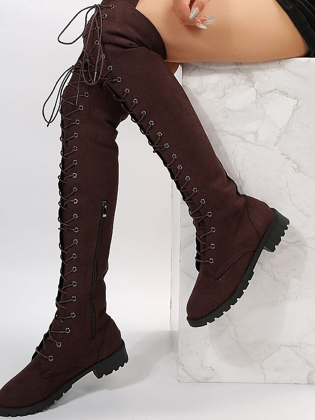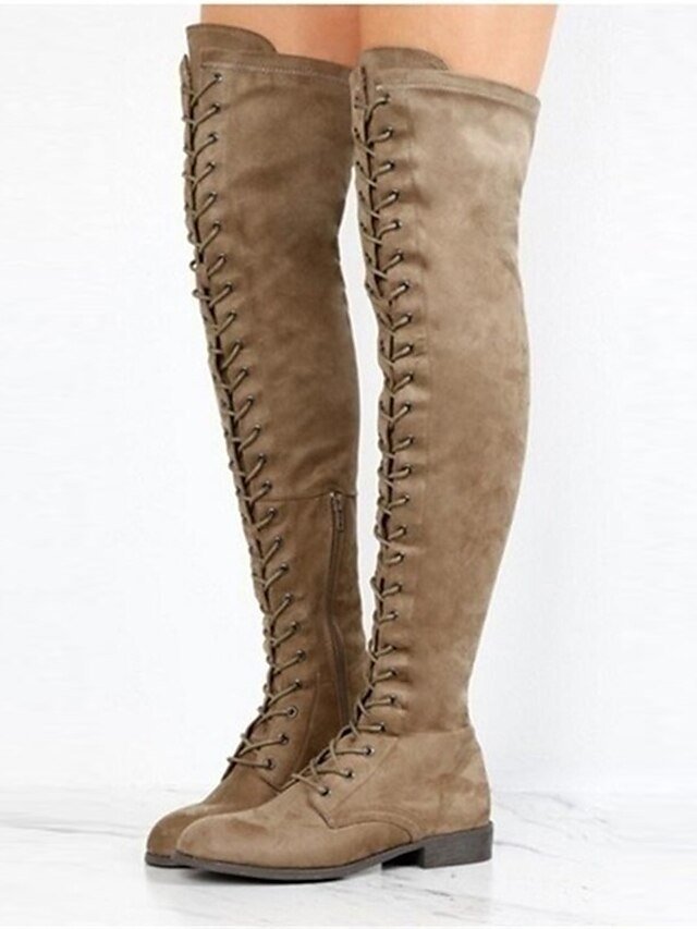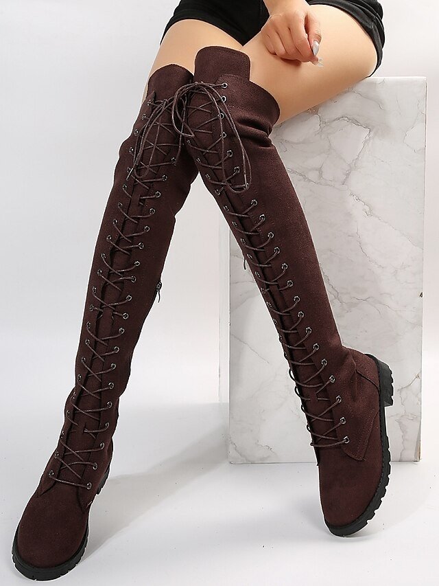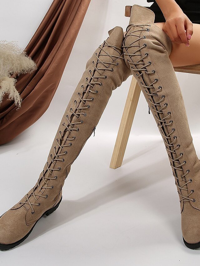 Step into a world of sophistication with our Stylish Flat Heel Lace-Up Over-the-Knee Suede Boots, designed for the modern woman who values comfort without compromising on style. Perfect for both casual outings and wintry strolls, these boots will elevate your wardrobe with a touch of elegance.