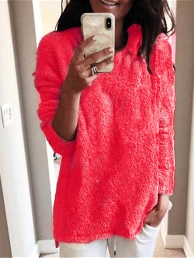 Stylish Oversized Solid Crew Neck Long Sleeve Knit Jumper