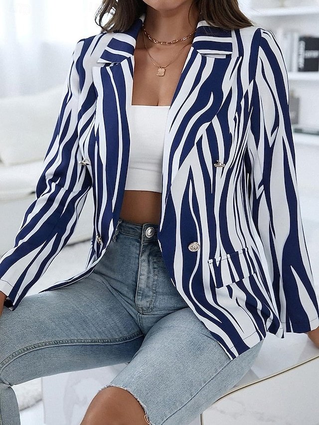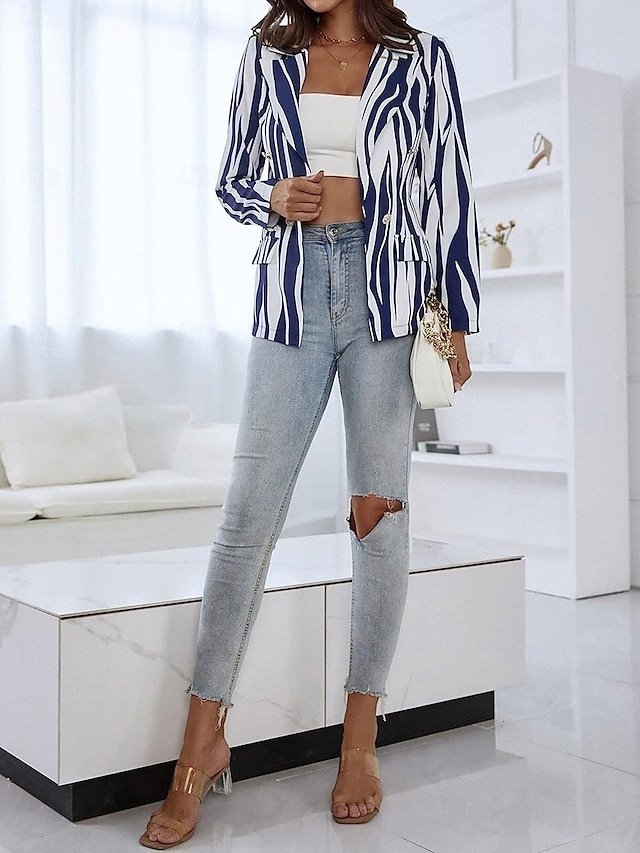 Step into the world of sophistication with our exquisite Stylish Regular Fit Stripe Long Sleeve Blazer, designed for the modern woman who appreciates the perfect blend of elegance and comfort.